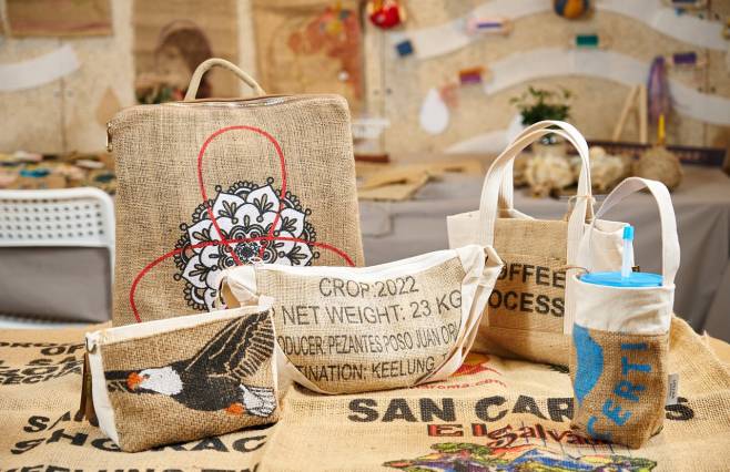 蘆葦女力與路易莎咖啡㩦手合作「循環經濟×女力發展」,將廢棄咖啡豆袋連結設計師與社區婦女參與製作,不但資源再利用,也支持中高齡婦女的就業及社會參與。
